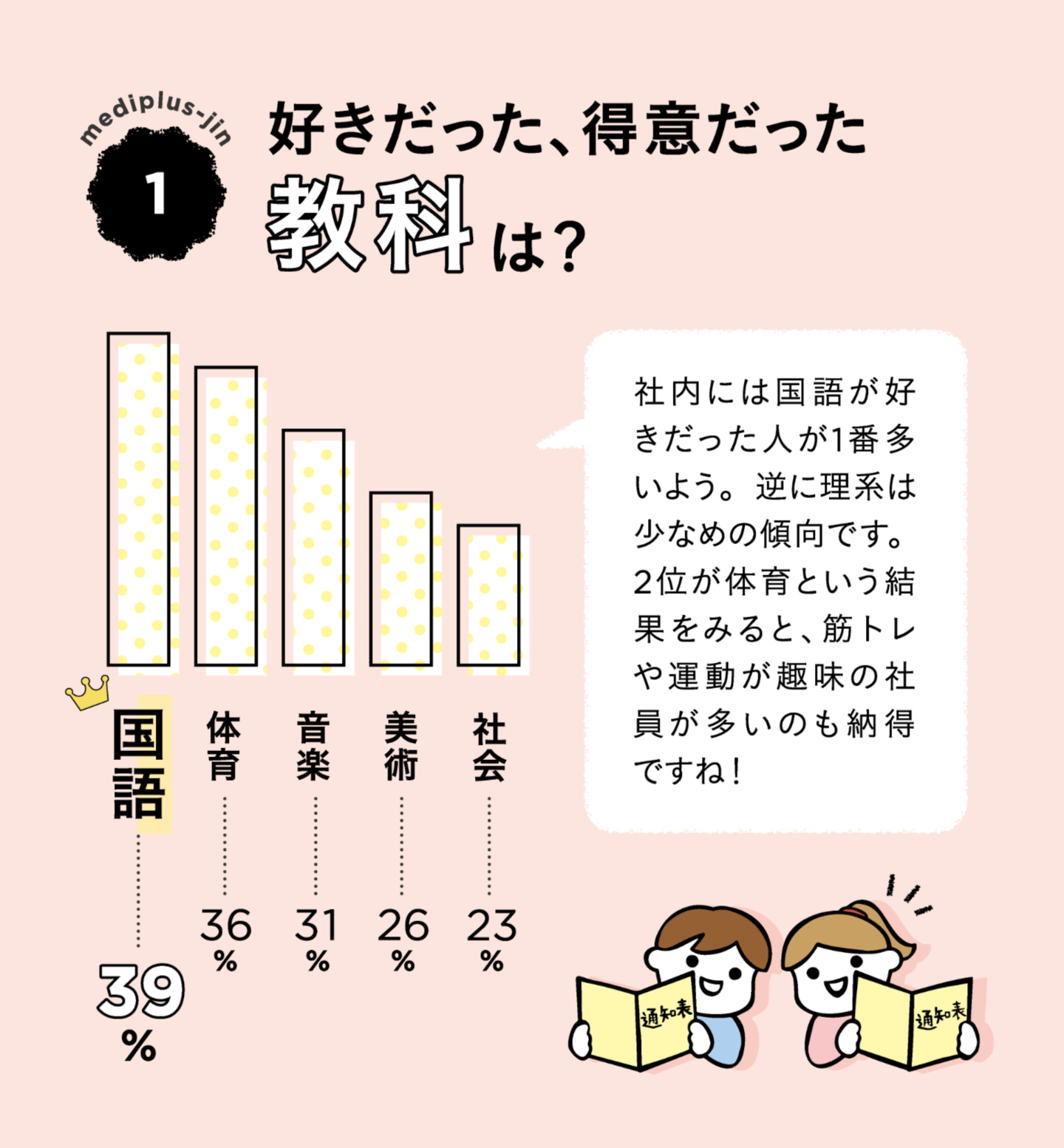 2位が体育という結果を見ると、